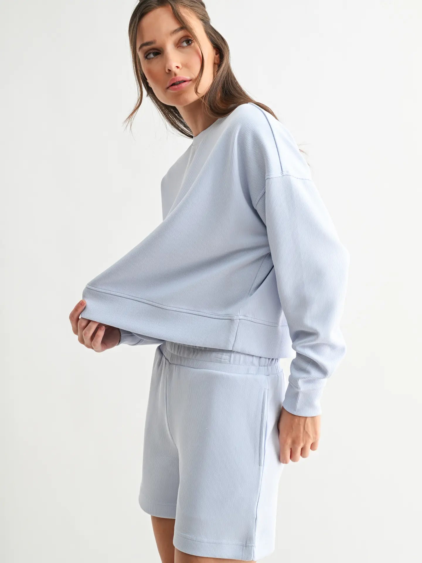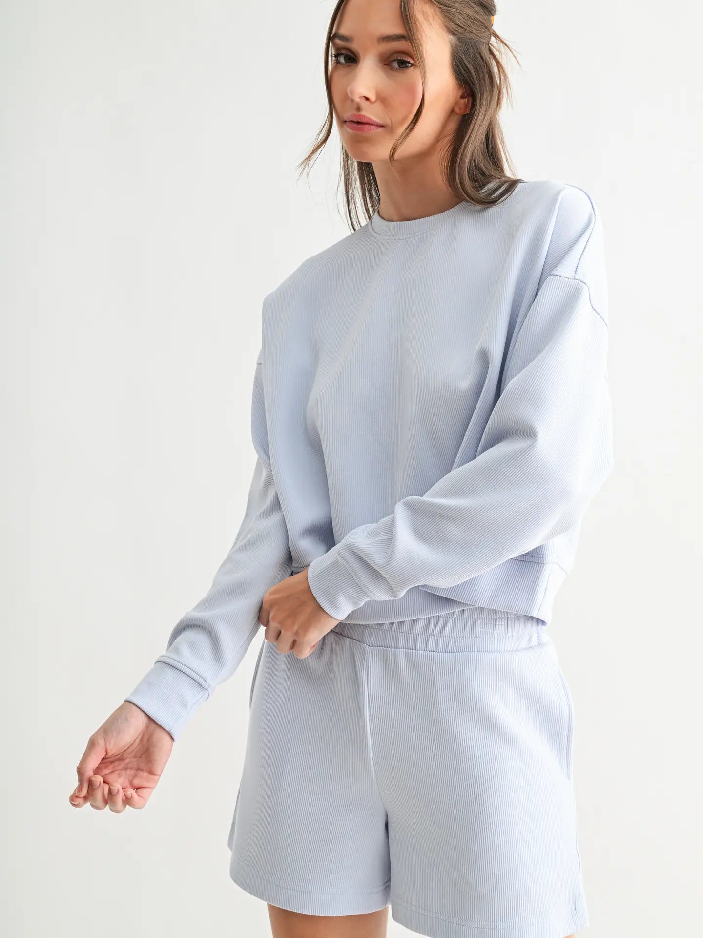 Effortlessly refined yet undeniably cozy, the Luxe Sand Wash Rib Sweater is a must-have for elevated comfort. Crafted from soft, sand-washed rib fabric, this sweater offers a rich texture that feels as luxe as it looks. The dropped shoulders and boxy fit create a relaxed, modern silhouette, perfect for layering or wearing solo. Designed for ultimate versatility, it pairs seamlessly with the matching Sand Wash Rib Pants